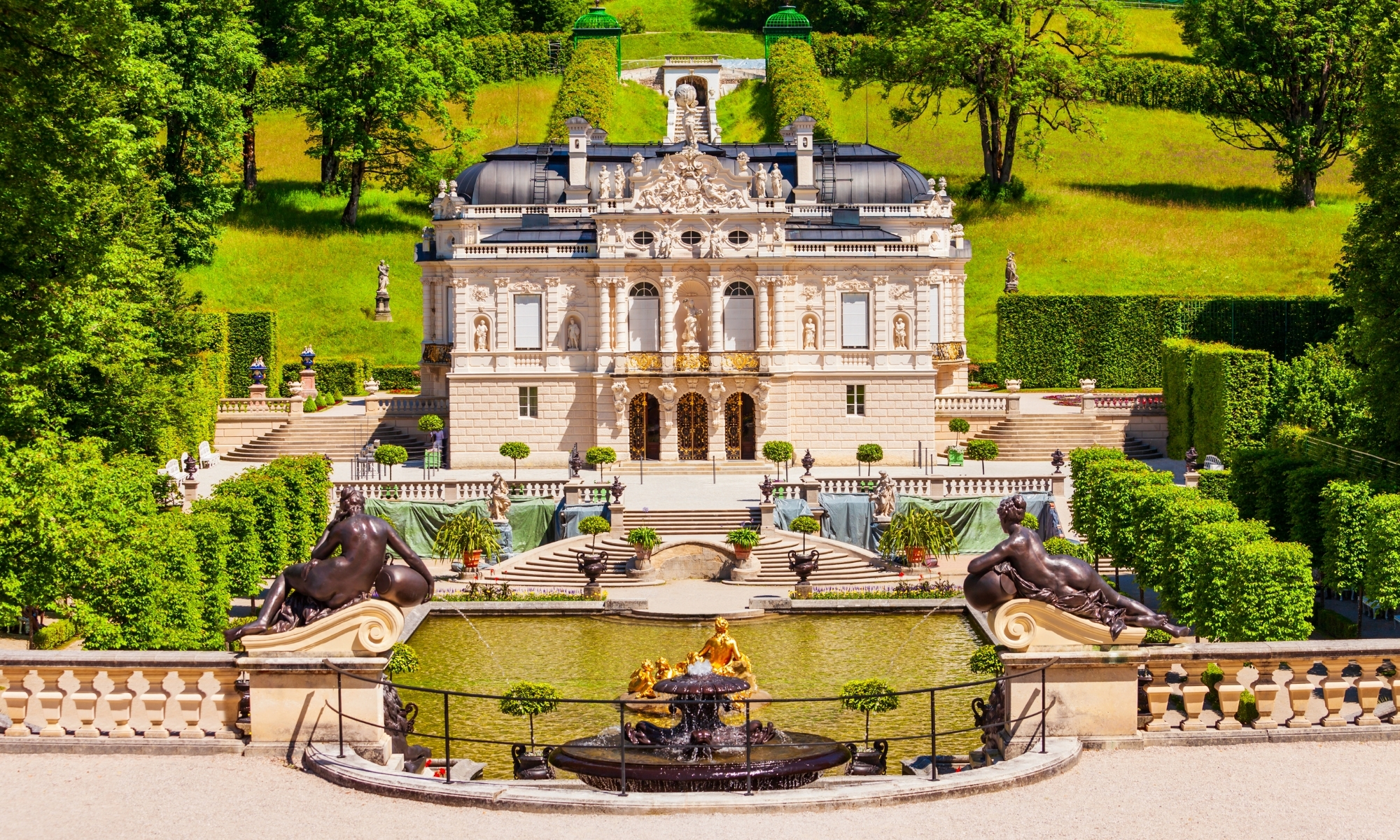 由路德維希二世設計,是他所建造的三座王宮之一。路德維希二世沉溺於天馬行空的幻想,其中林德霍夫宮展現了極致華麗的洛可可風格,足見路德維希二世對法王路易十四的無盡致敬。
