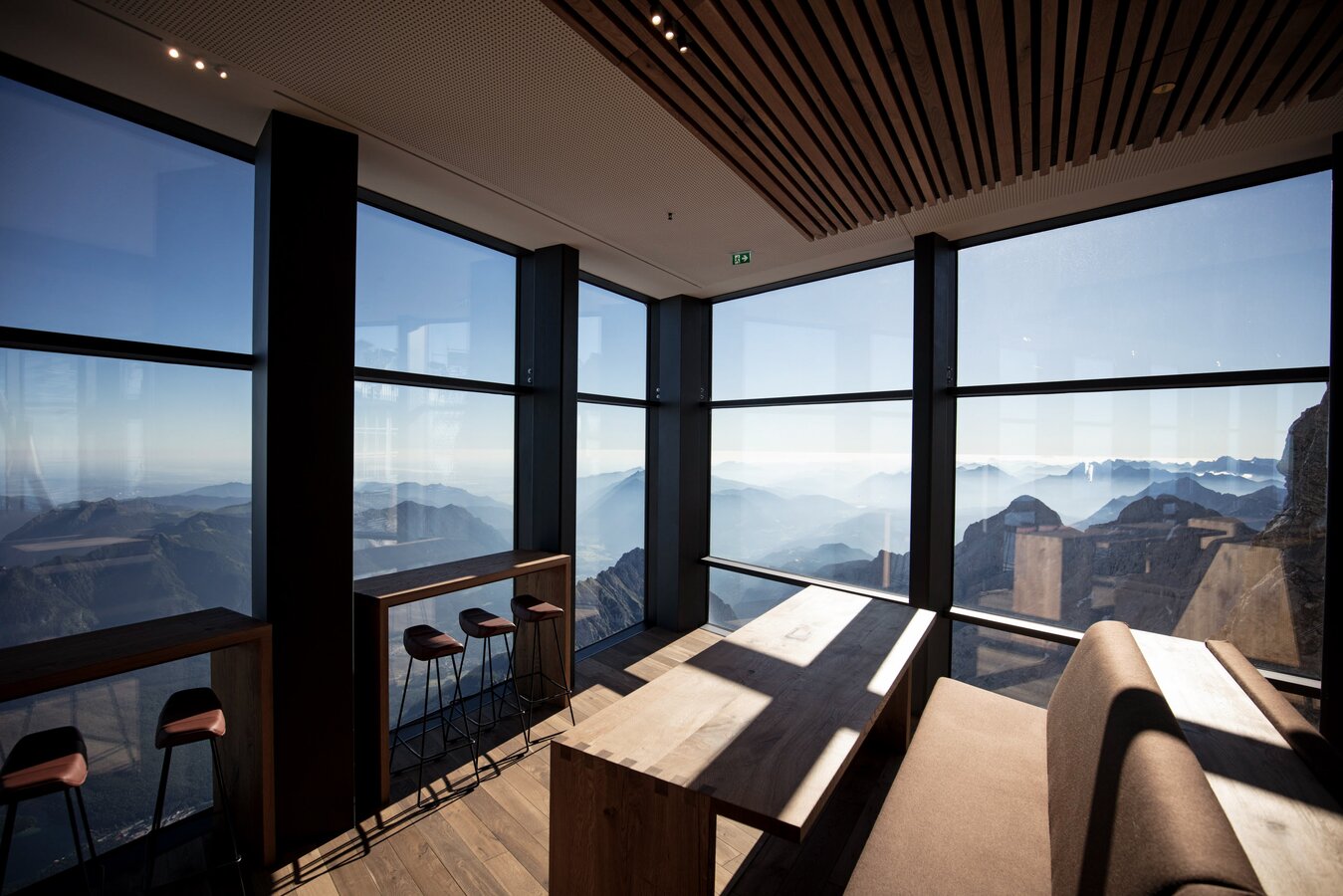 德國境內最高山峰,於觀景台上可飽覽一望無際的阿爾卑斯山全景,更可遙望德國、奧地利、意大利及瑞士的千峰萬巒。乘齒軌火車登上冰河平台,再轉乘纜車抵2962米的峰頂。