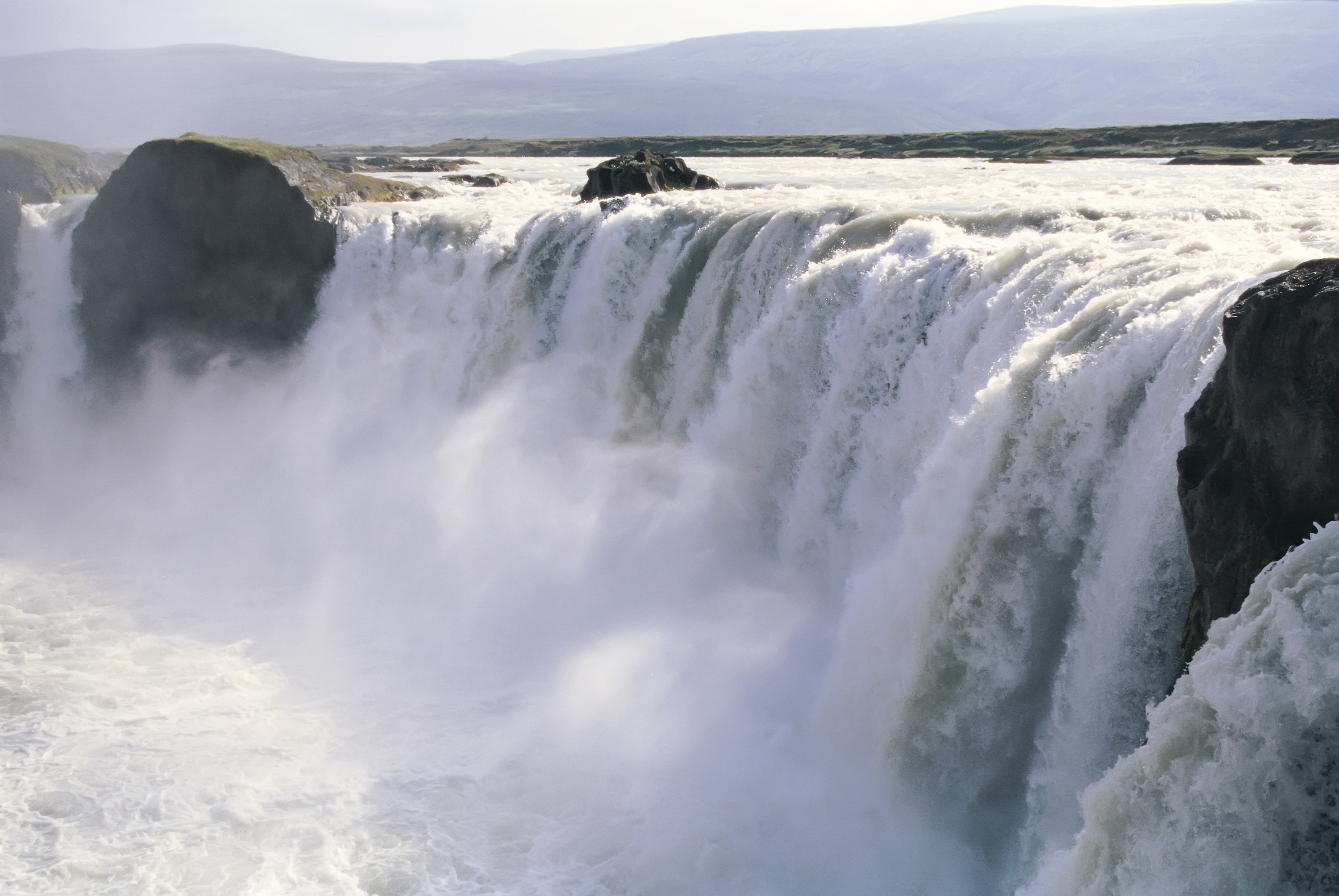 是冰島北部瓦特納冰川國家公園內、歐洲水量最大的瀑布之一。水聲震耳欲聾,並因夾帶火山灰而呈現灰白色。前往瀑布可分為東側與西側觀景區,