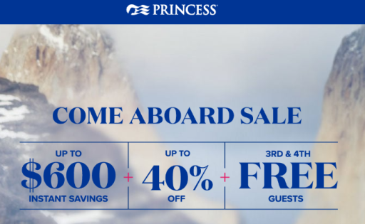 公主遊輪 船票高達6折+同艙房第三、四位客人可享免船費