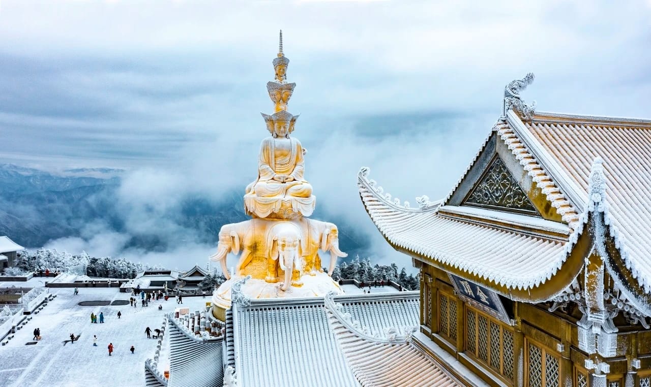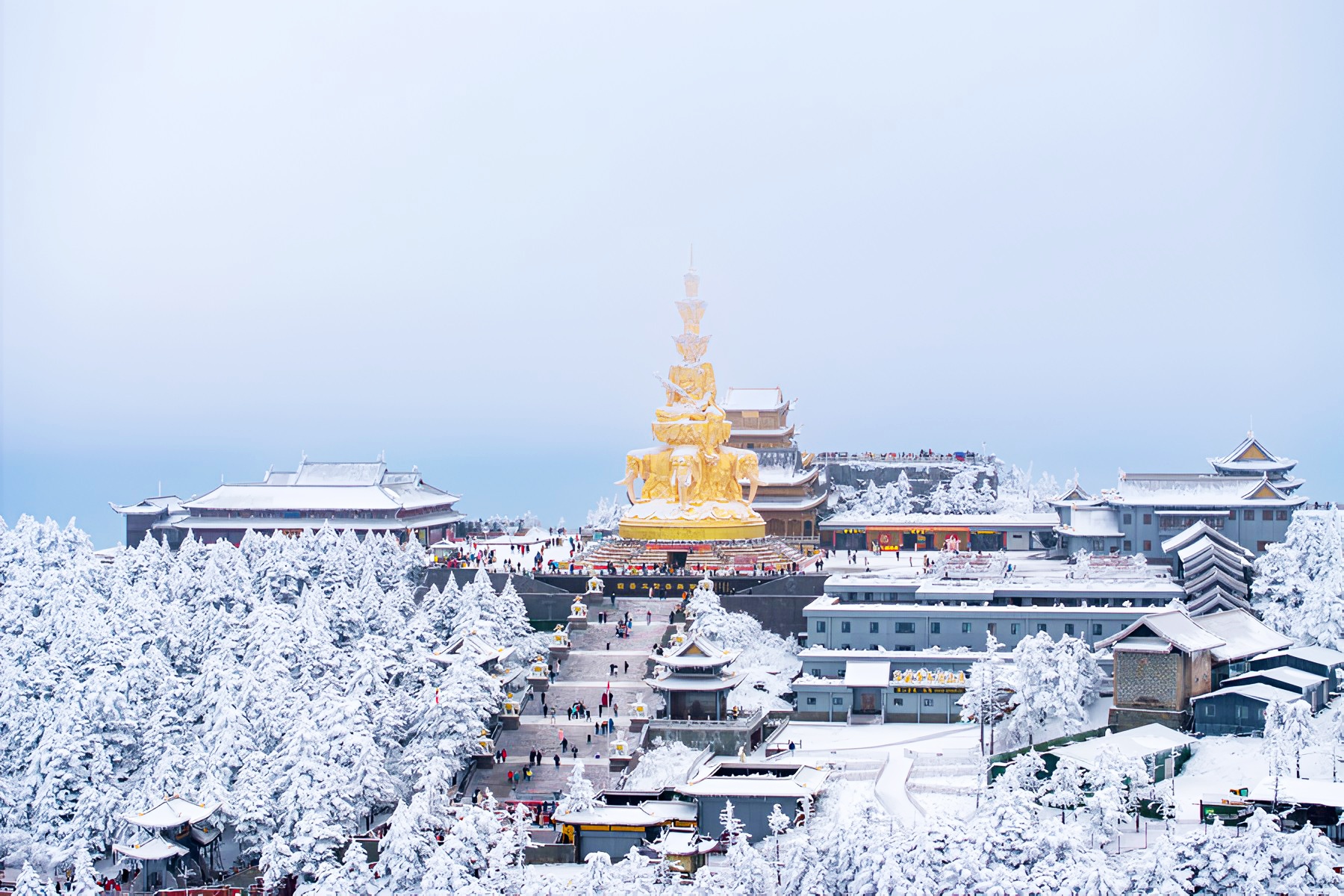 世界文化自然雙遺產,最高峰萬佛頂海拔3099米。地勢陡峭,風景秀麗,有「峨眉天下秀」之美譽。它是中國四大佛教名山之一,有寺廟約26座,重要的有八大寺廟,佛事頻繁。據傳為佛教中普賢菩薩的道場。