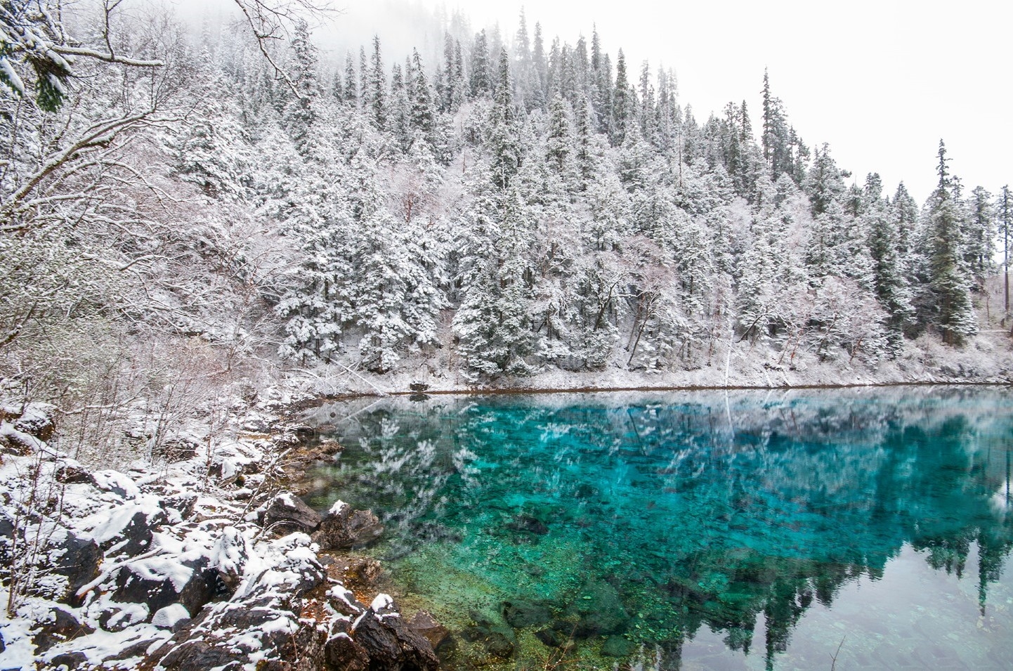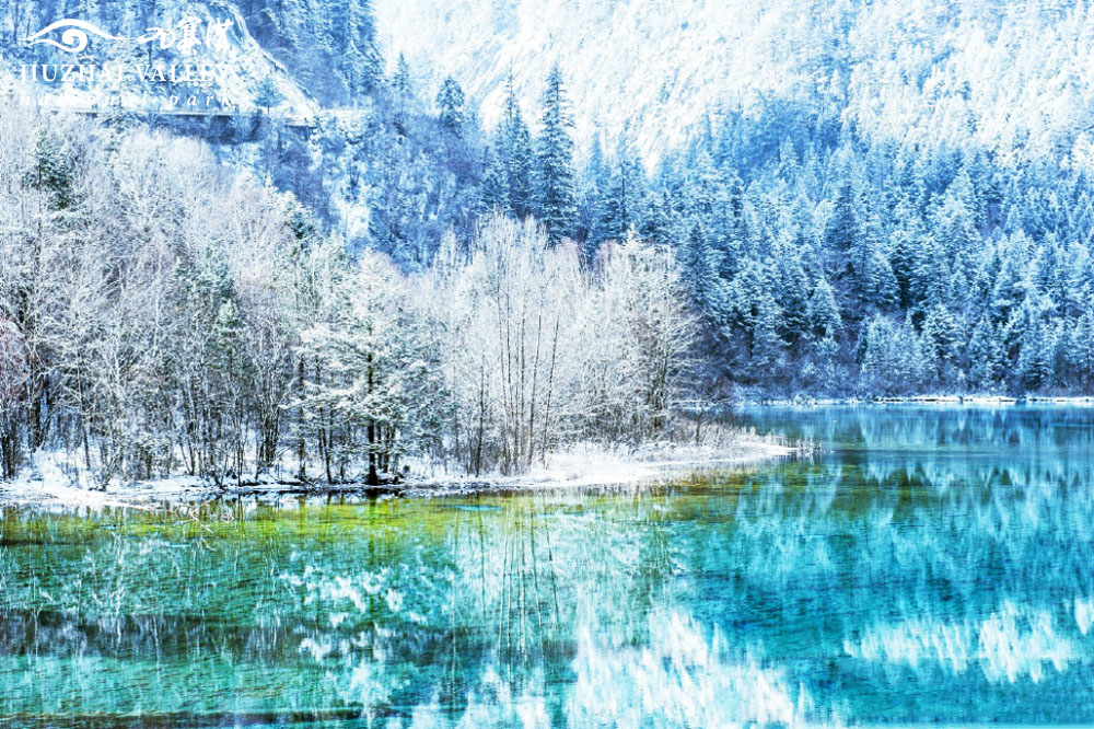 鏡海水面平滑似鏡,鏡中雪峰、林嵐倒映,景影清晰,細觀水中的倒影比真正的實景顯得更加婀娜多姿,堪稱九寨溝絕景之一。