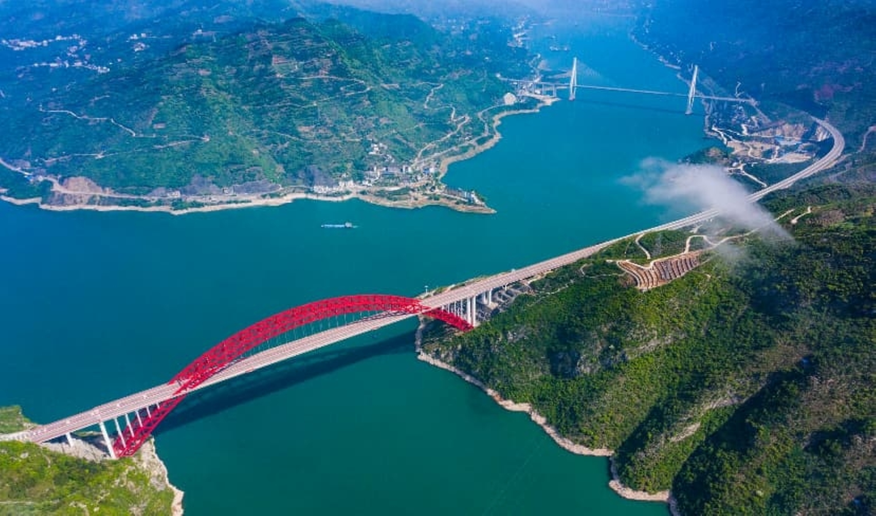 乘坐觀光船遊覽「巫山小三峽」的美景。乘船穿行於險峻的峽谷之間,清澈的水面映照著藍天白雲,宛如進入了童話世界。換乘小船進入「小小三峽」,兩側是令人驚嘆的懸崖峭壁,下方湍急的河水沖擊著巖石,宛如一幅潑墨山水畫。