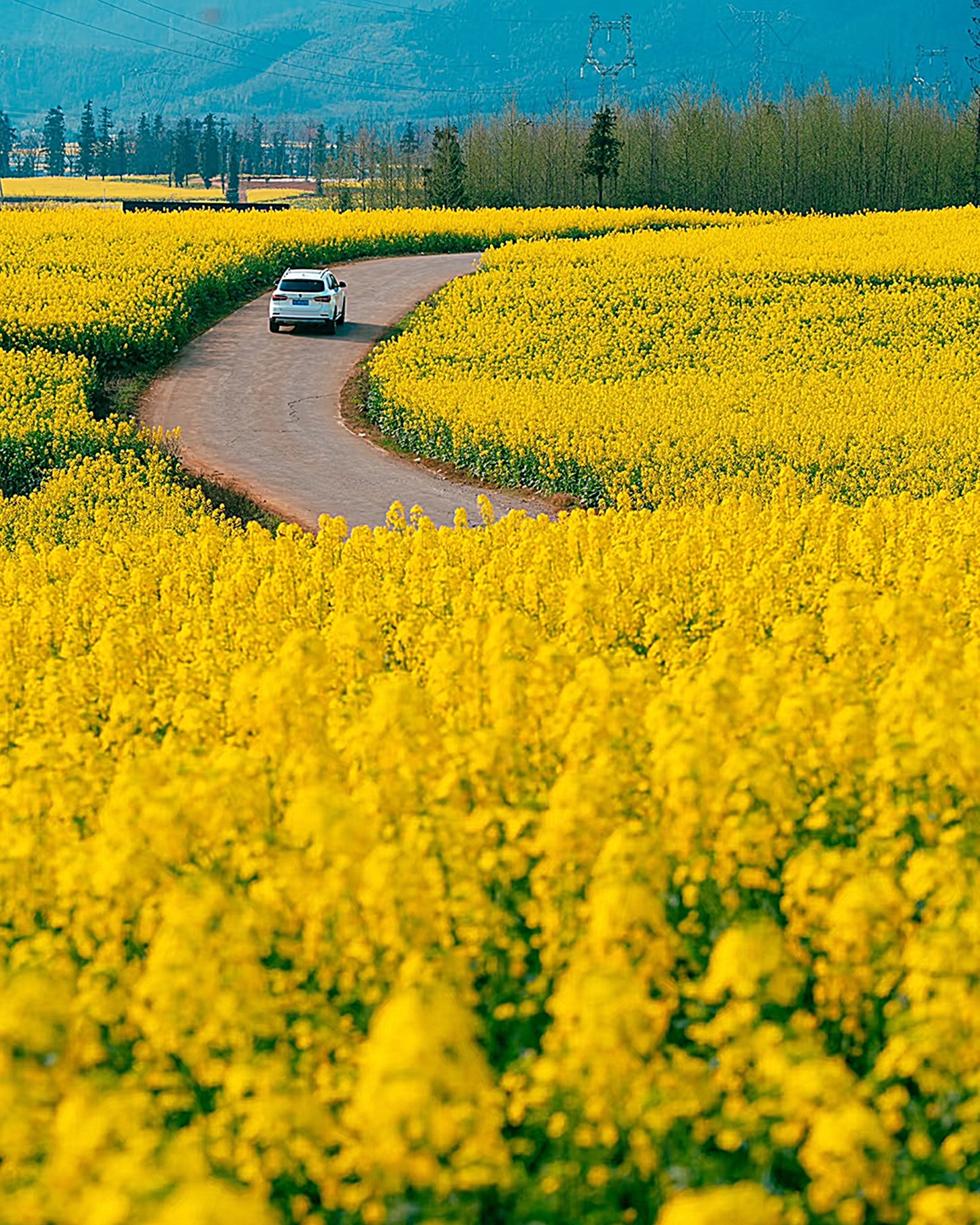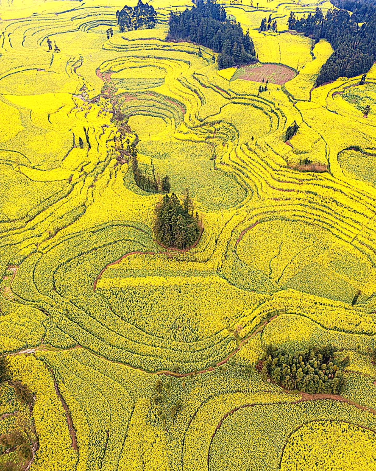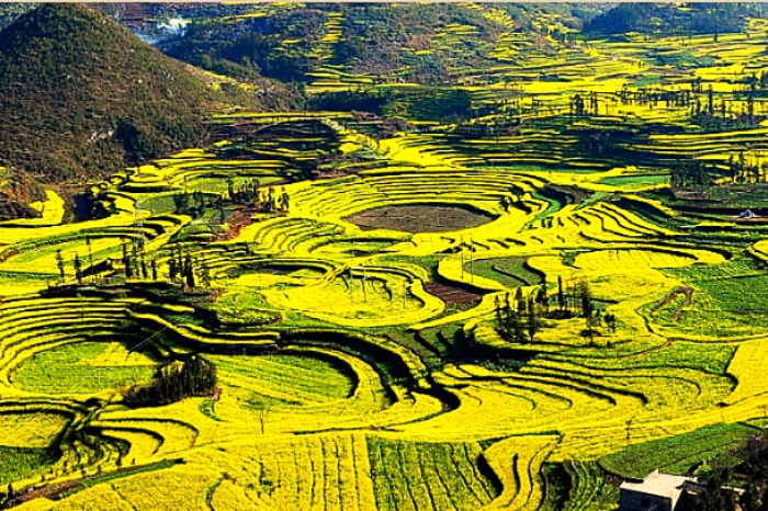 螺絲田是其中最著名油菜花拍攝點,這裡的梯田是圈狀的,遠遠看去真像是螺絲上的旋紋。
