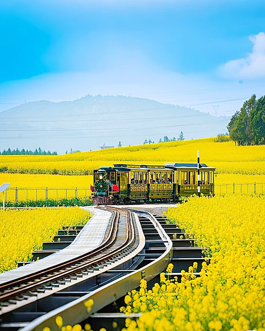 觀光鐵路從臨安站出發,途經雙龍橋站和鄉會橋站,終點為團山站。旅客可以體驗懷舊的車廂和沿途(春有油菜花)的田園風光。