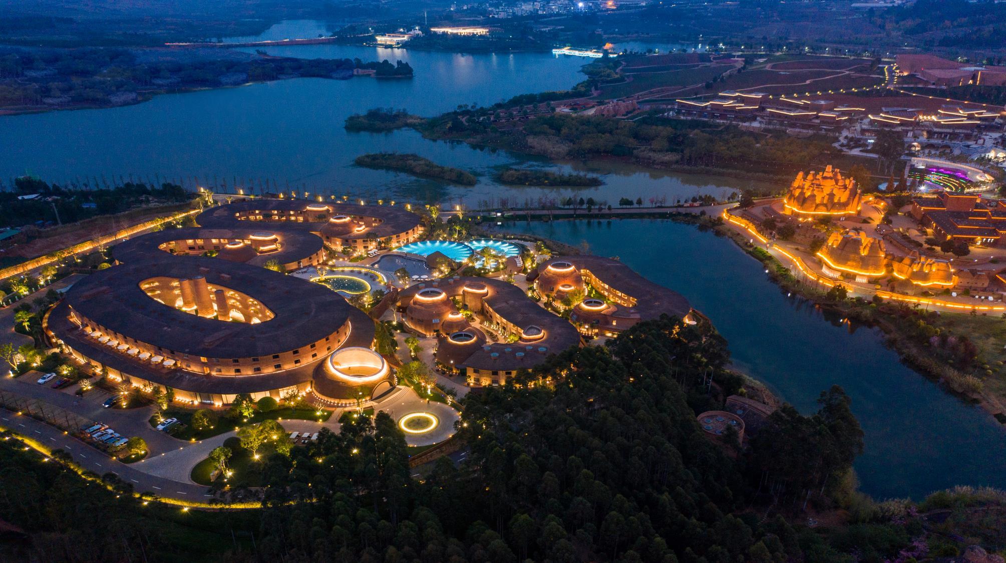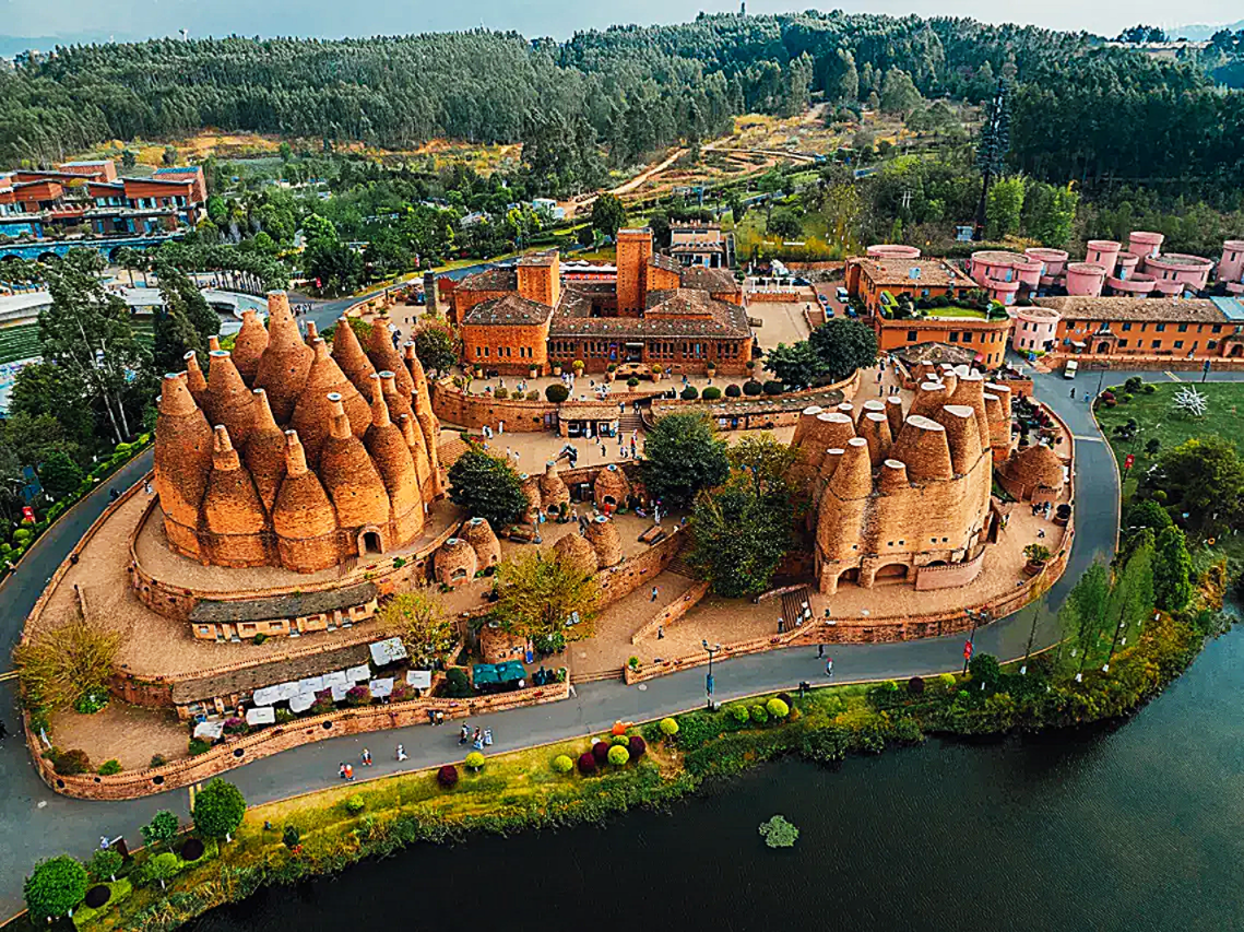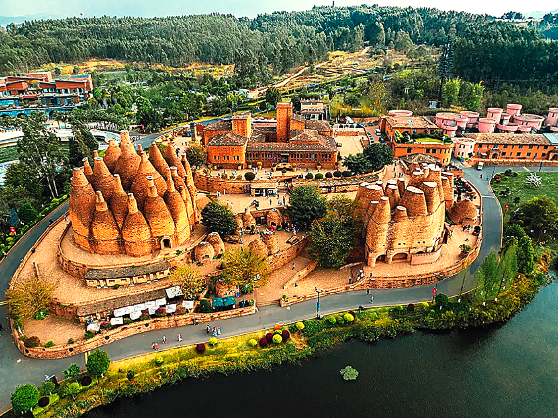 以葡萄文化、自然風光和藝術人文為主題的特色景區,被譽為滇中的「普羅旺斯」。景區內有各種造型獨特的紅磚建築,如萬花筒藝術館、半朵雲等,充滿藝術氣息。
