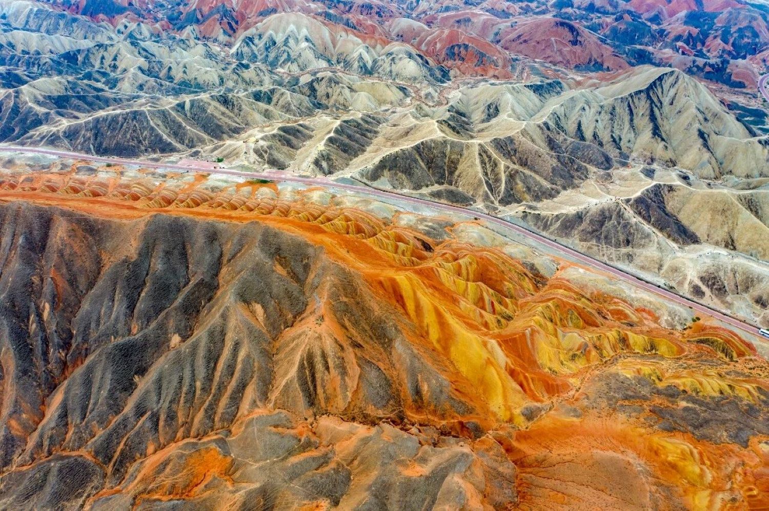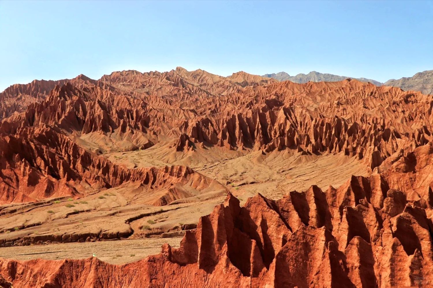 這是中國最熱的地方。火焰山的整個山體,全部由紅色的砂岩和頁岩組成。