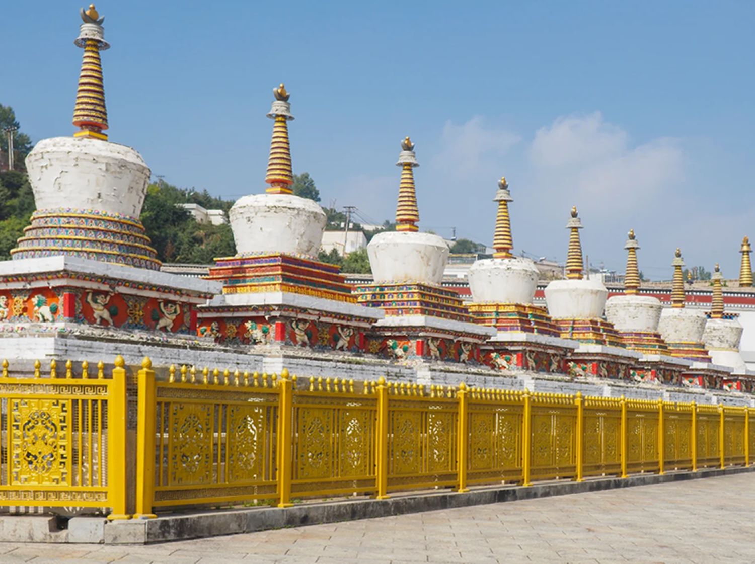 建築分布於蓮花山的一溝兩面坡上,以大金瓦殿為中心,共有大小建築1000多座院落,4500多間殿宇僧舍,形成了集漢藏技術於一體的建築群。寺內的酥油花、壁畫和堆繡被譽為塔爾寺藝術三絕。