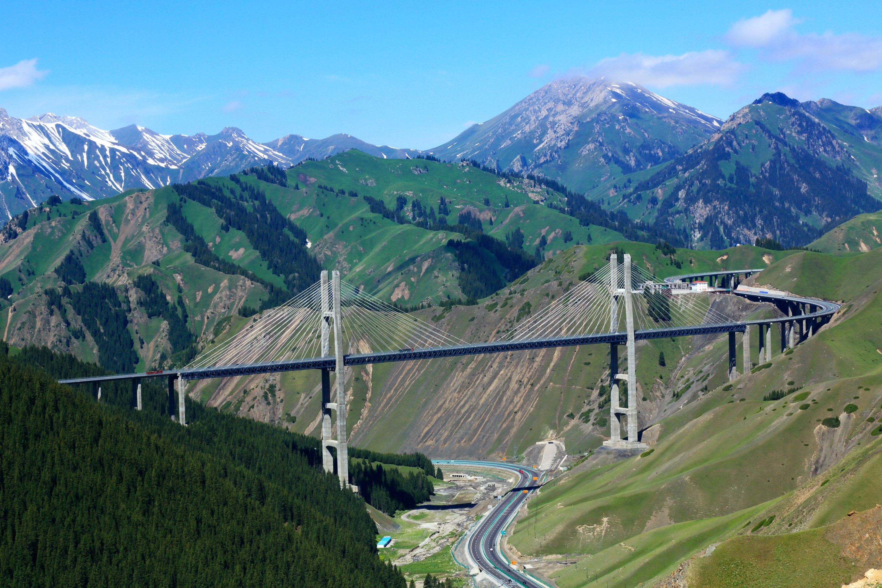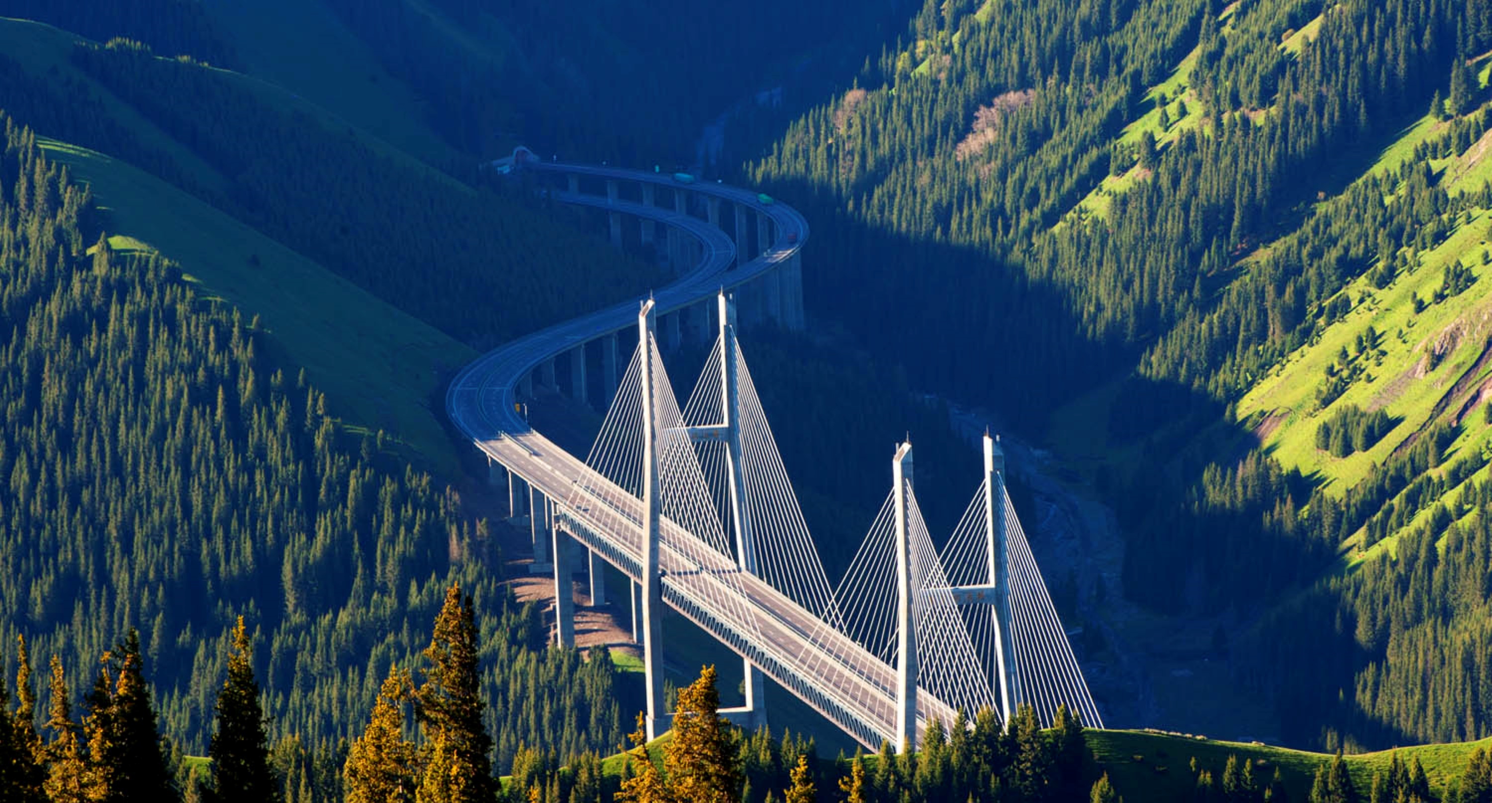 是伊犁河谷的門戶,白雲藍天,雪山松樹,峰回路轉,風光旖旎。橋樑全長 700米,與谷底距離達200米。前往果子溝大橋觀景台,拍攝這座「新疆第一高橋」,欣賞大橋與峽谷相映的壯麗景致。