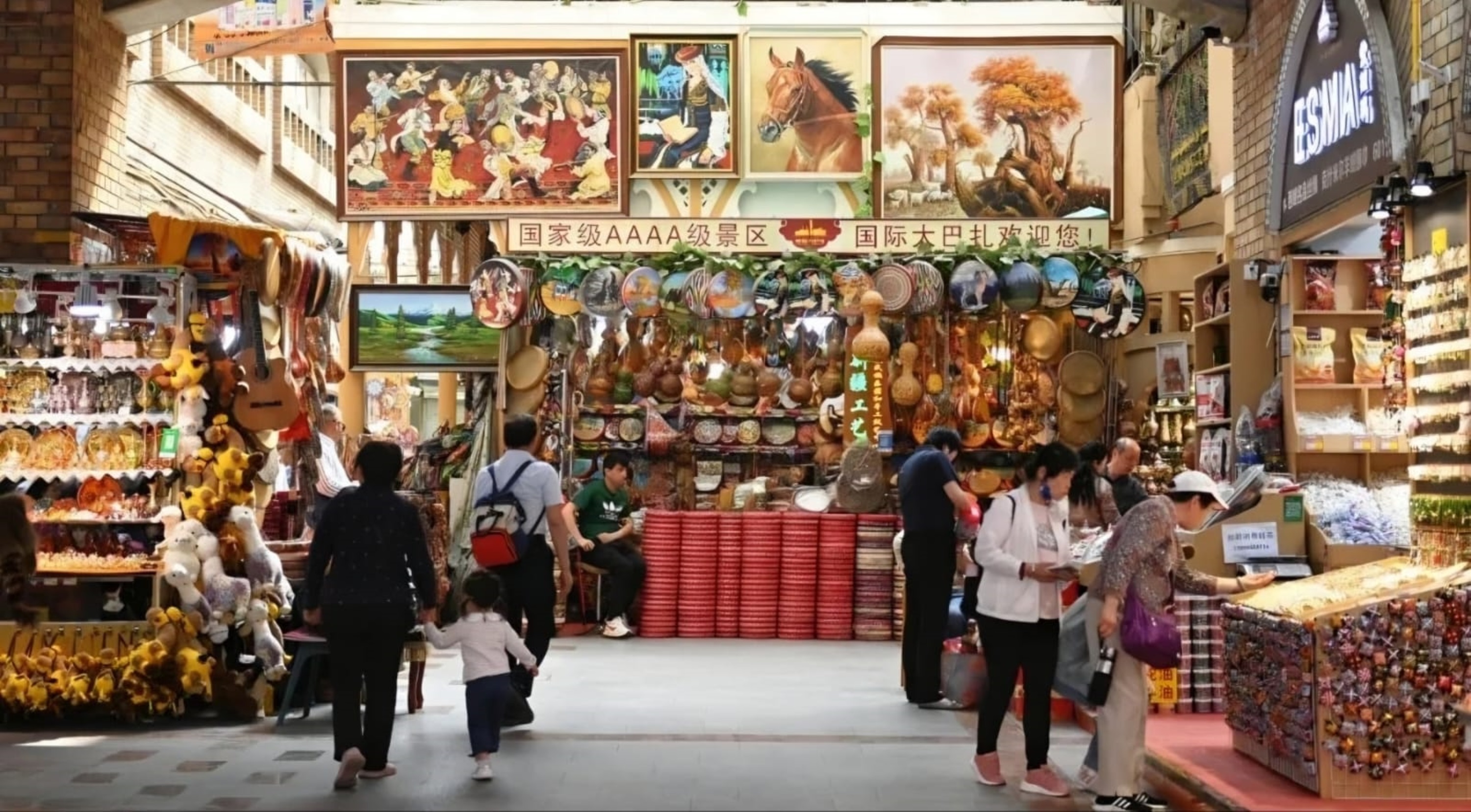 建築風格具有鮮明的伊斯蘭色彩,這裡的商品充滿了少數民族特色。您可以在這裡購買到充滿新疆特色的葡萄乾、杏乾、精油等商品。