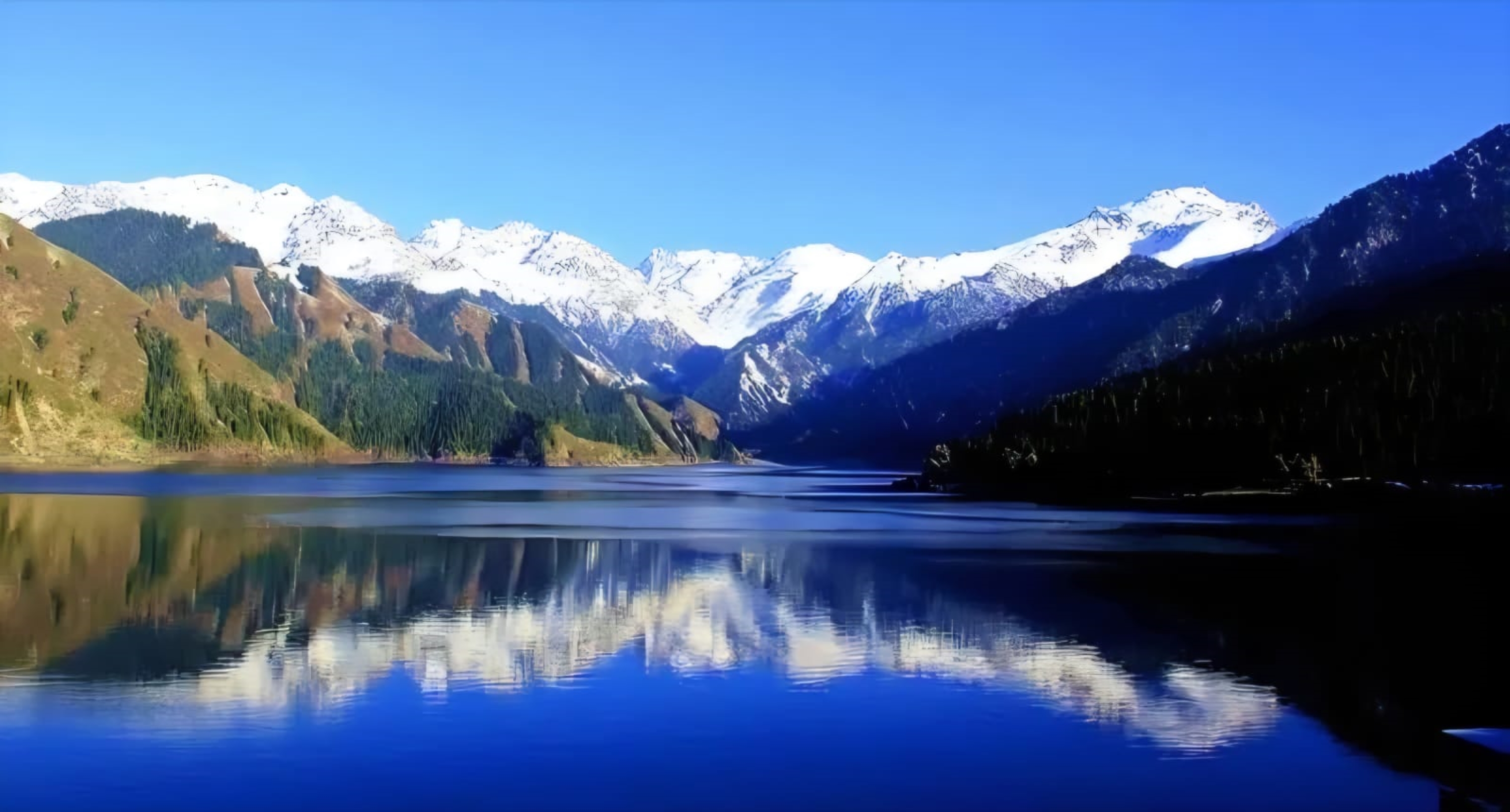 面積最大的高山冷水湖,古稱「淨海」。湖水主要由天山冰雪融水與地下水匯聚而成,透明度可達12米,湛藍如鏡,被譽為「大西洋最後一滴眼淚」。湖畔草原遼闊,四季景觀壯麗純淨。