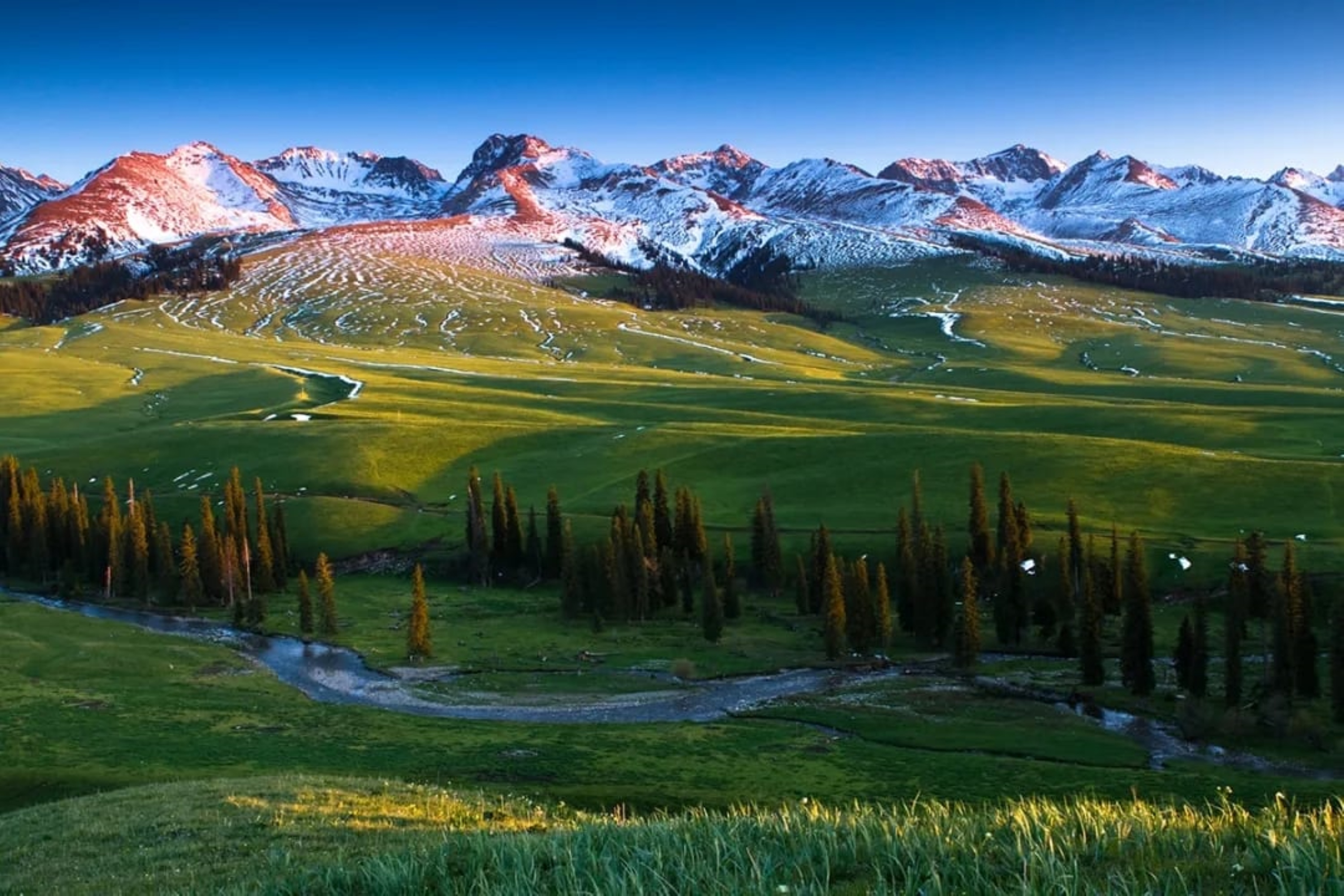 位於新疆伊犁河谷的空中草原,被譽為「天山綠島」。它擁有遼闊的河谷草原與壯麗的雪山背景,夏季綠草如茵、野花盛開,是體驗哈薩克遊牧文化與自然風光的絕佳勝地。