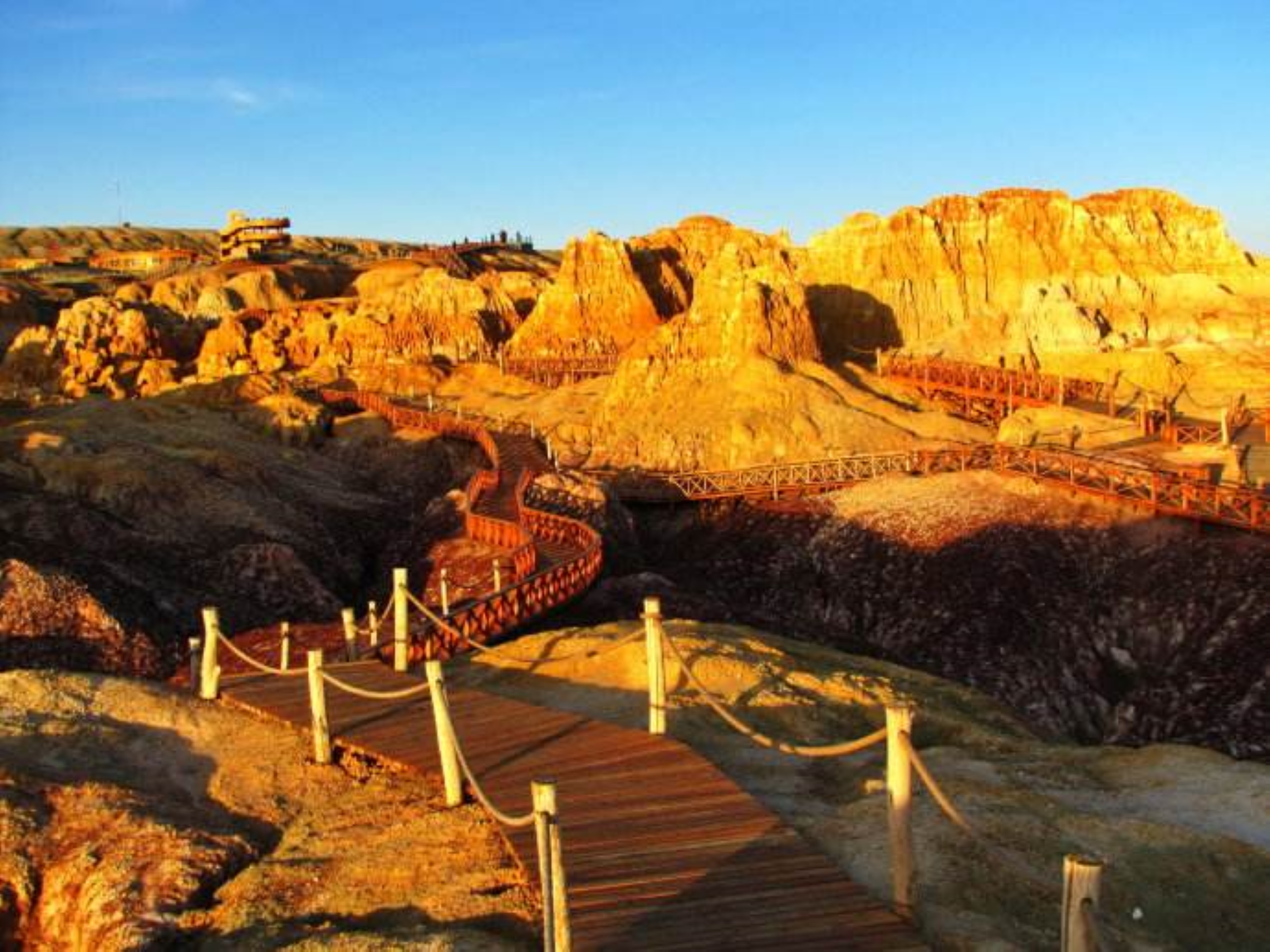 位於吉力湖畔烏倫古湖入水口,是一片罕見的雅丹地貌,呈現出不同色彩的城堡狀建築,營造出多姿多彩的世界。