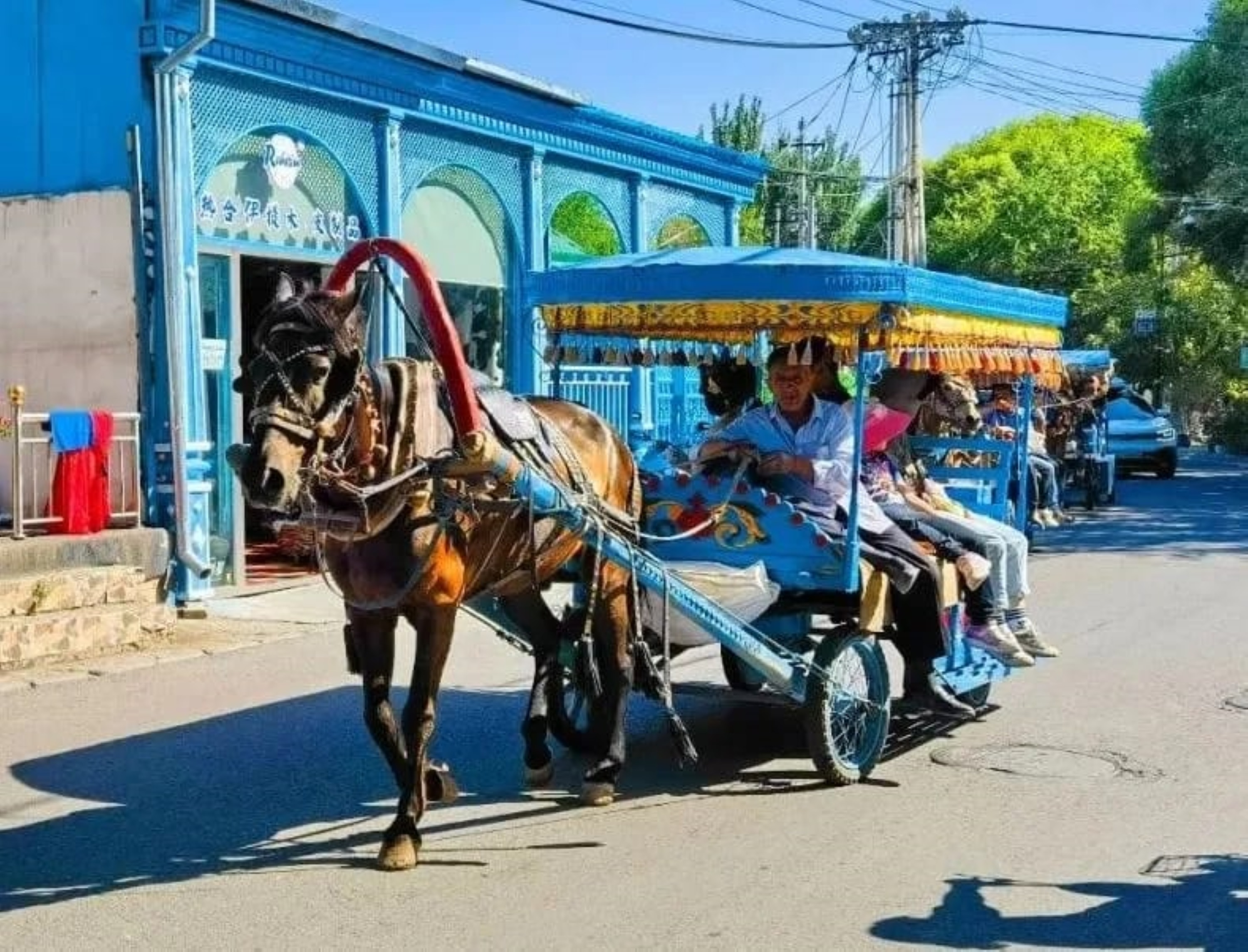 伊寧最具維吾爾風情的歷史街區,街區內保留大量 俄式、維吾爾式與中亞風格建築,牆面多以明艷的藍色為主調,窗櫺雕花精緻。乘坐馬車穿梭巷弄,宛如走進多元文化交融的「活態博物館」。
