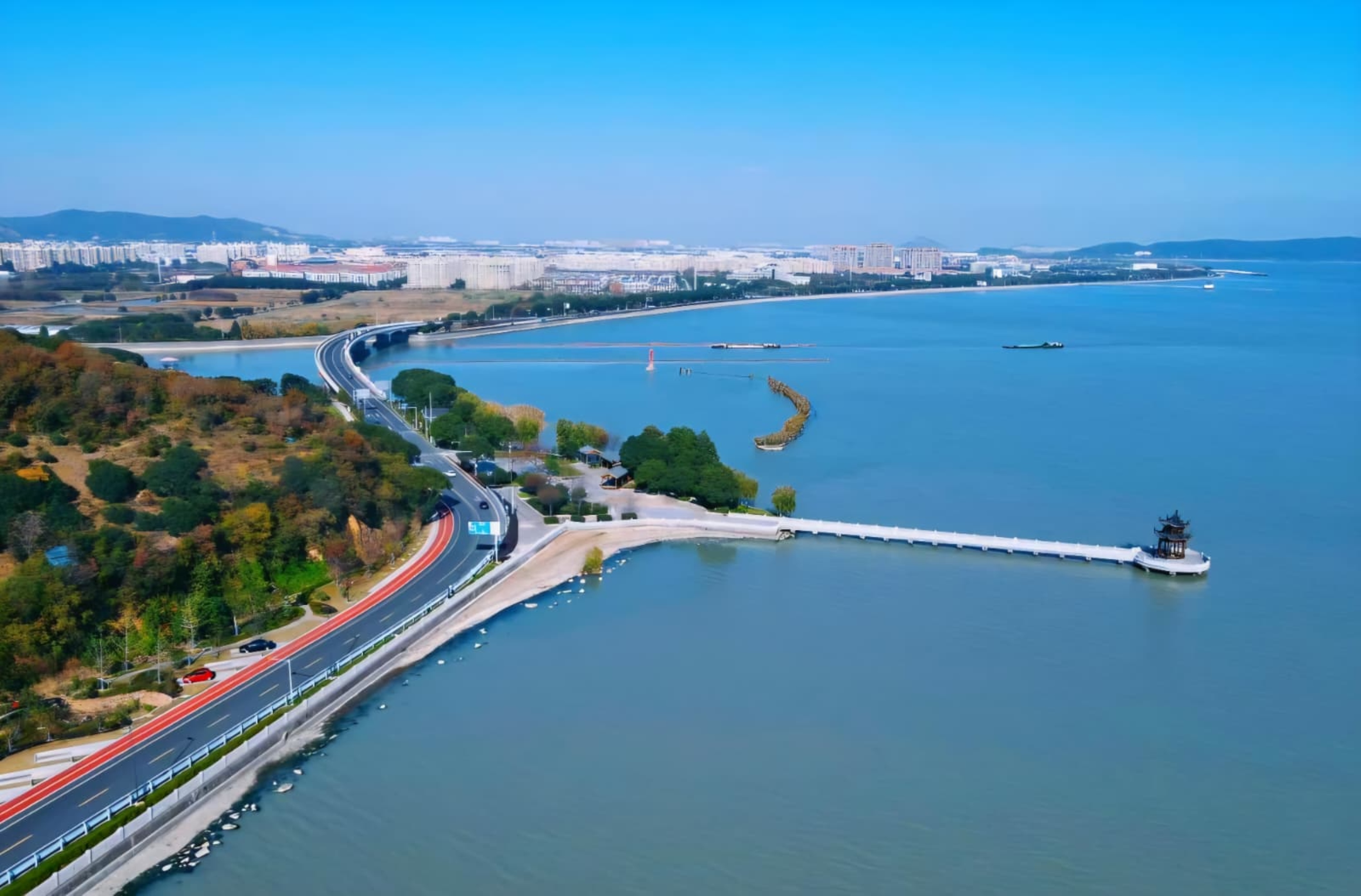蜿蜒於太湖之濱,以現代景觀設計,完美交融自然與人文。春日堤岸,湖水澄澈、綠草如茵,遠山如黛,宛如一幅靈動的山水畫卷。