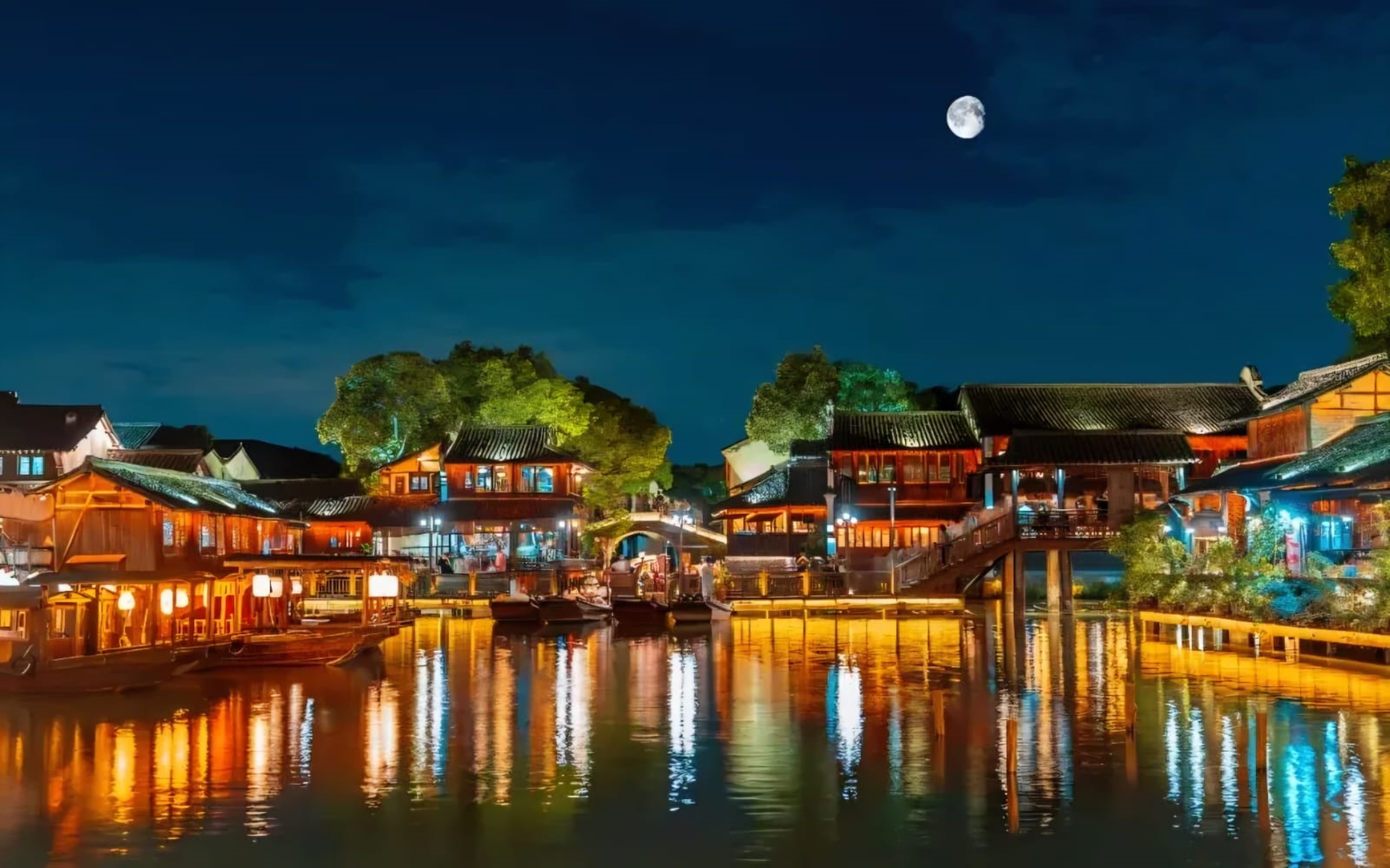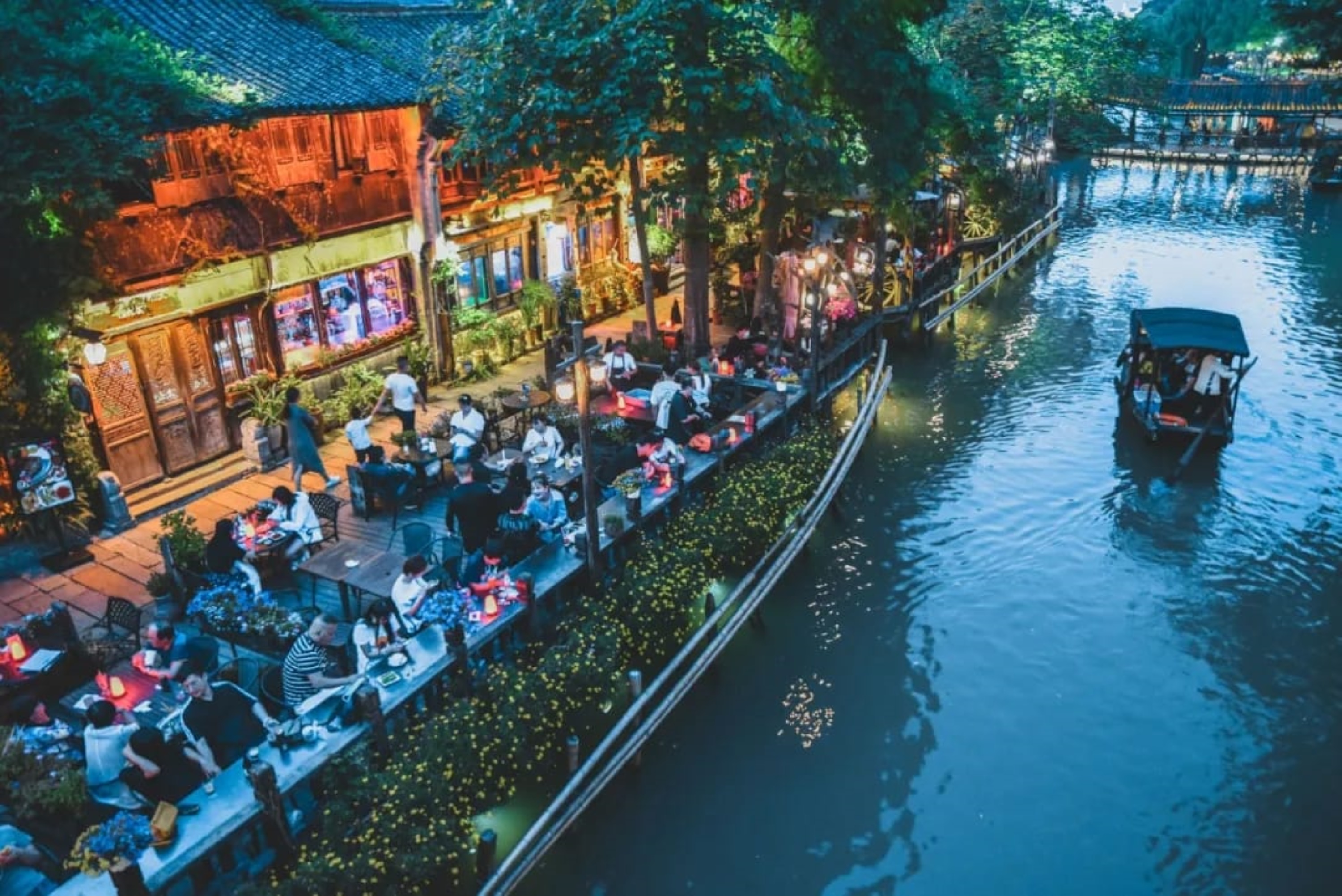 國家5A級景區,西柵經過統一保護與再生,完整保留了晚清至民國的水鄉古鎮風貌,被譽為「烏鎮的精華所在」。小橋流水、古巷幽深,入夜後燈火璀璨,水閣倒影如夢似幻。
